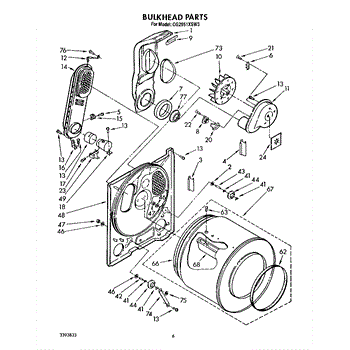 This front bearing ring sits on the dryer's front bulkhead to provide a smooth, low-friction surface for the drum lip. Replacing a worn ring helps restore quiet, steady drum rotation and prevents scraping against the front panel. What it does: