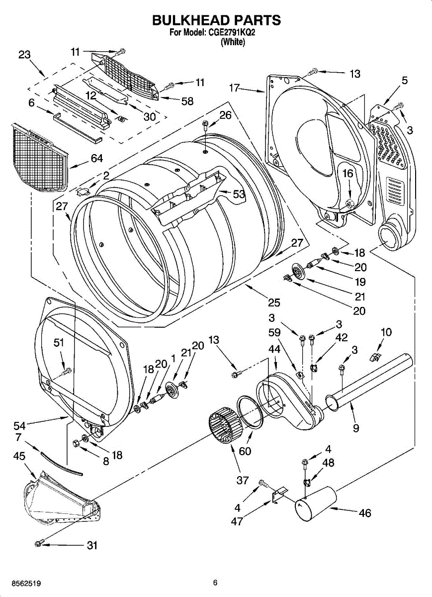 This front drum bulkhead is the stationary front panel that supports the dryer drum and seals the drum opening to maintain proper airflow and drum alignment for reliable drying performance. What it does:
