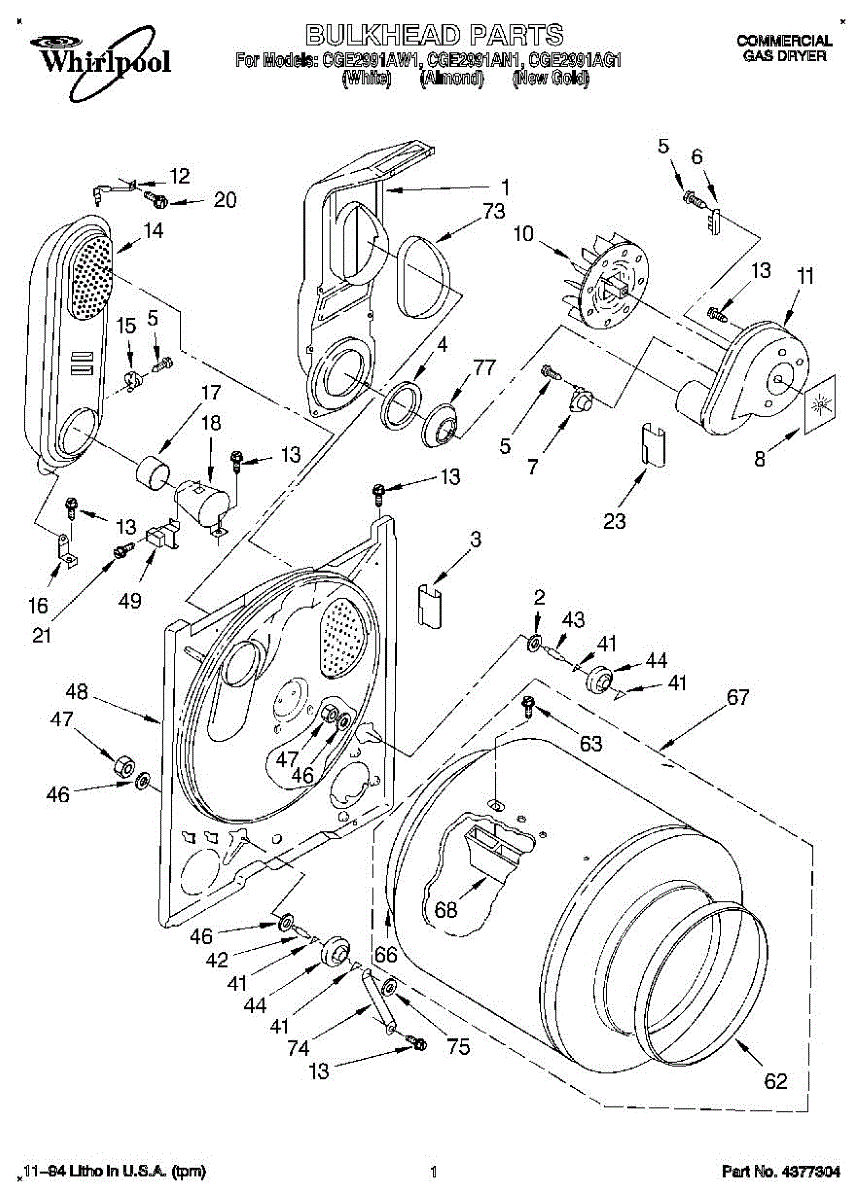 Replacement drum front bulkhead for dryers. Installs at the front of the drum assembly. Needed when original is cracked, damaged, or worn out.