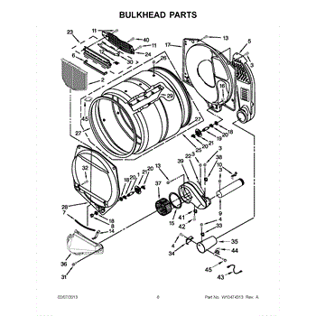 This bulkhead is the front interior panel that supports the drum and helps direct dryer airflow for efficient tumbling and exhaust. It restores proper drum alignment and airflow when the original panel is worn or damaged. What it does: