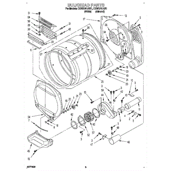 This bulkhead is the front interior panel that supports the drum and helps direct dryer airflow for efficient tumbling and exhaust. It restores proper drum alignment and airflow when the original panel is worn or damaged. What it does: