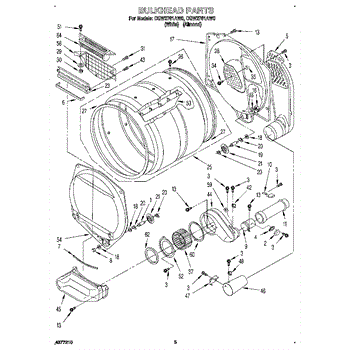 This bulkhead is the front interior panel that supports the drum and helps direct dryer airflow for efficient tumbling and exhaust. It restores proper drum alignment and airflow when the original panel is worn or damaged. What it does: