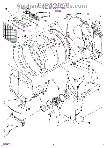 Replacement dryer drum that holds and tumbles laundry so air circulates evenly for efficient drying. Restores a smooth rotating drum surface to prevent fabric damage and improve drying performance. What it does: