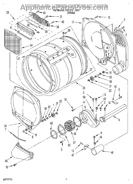 This front drum bulkhead is the stationary front panel that supports the dryer drum and seals the drum opening to maintain proper airflow and drum alignment for reliable drying performance. What it does: