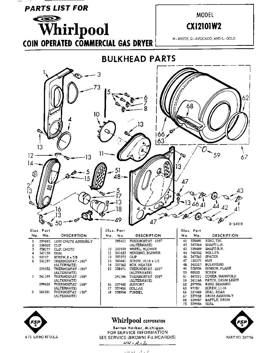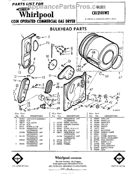 Parts for Whirlpool CXI2101W2: 01 - Bulkhead Parts