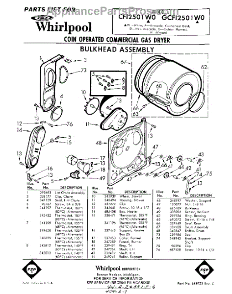 Parts for Whirlpool GCFI2501W0: 01 - Bulkhead Parts