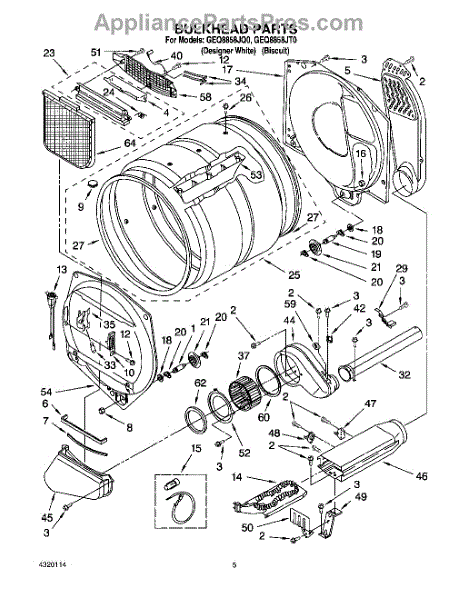 This blower housing directs dryer airflow from the drum to the exhaust for proper ventilation and consistent drying performance. It replaces a cracked or damaged housing to restore airflow and reduce noise. What it does:
