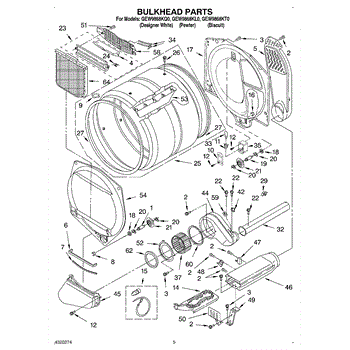 This front drum bulkhead is the stationary front panel that supports the dryer drum and seals the drum opening to maintain proper airflow and drum alignment for reliable drying performance. What it does: