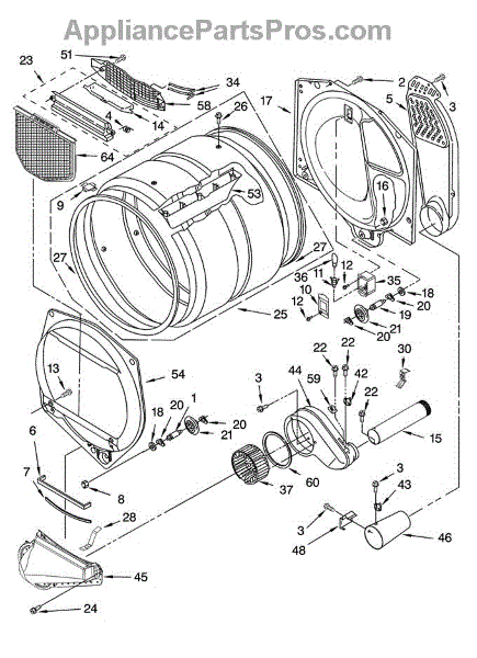 This is a drum assembly used in many home dryers. The component is located inside the appliance and is tasked with holding the clothing during a dryer cycle. It is made of durable materials but can experience wear and tear or damage that cause it to malfunction. If the drum assembly is worn or damaged, it may cause the appliance to buzz or squeal, start and stop, and seize up during use.If the drum assembly is damaged or worn, it will need to be replaced. This will require a set of tools and a pair of work gloves. Before starting the replacement process, make sure the dryer is unplugged from the wall. The dryer will need to be disassembled to access the drum assembly. The belt can be used to pull out the drum so the new component can be installed. Replace the part and reassemble the dryer. It should be plugged back in before use.This part is sold on an individual basis. It is designed to be used with several dryers created by Admiral, Amana, Maytag, Kenmore, and Whirlpool. The drum assembly is an authentic OEM replacement part that is sourced directly from the manufacturer.