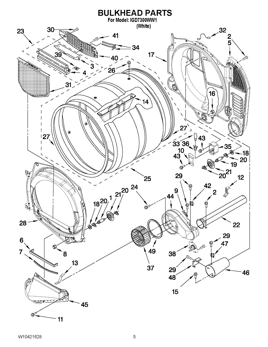 Replaces the front bulkhead section of your dryer drum. Needed when the drum front is cracked, dented, warped, or damaged, affecting tumbling performance.