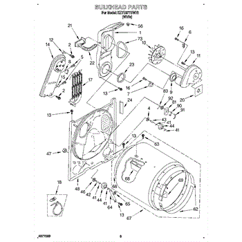 This blower housing assembly directs airflow from the dryer's drum to the exhaust, helping the appliance vent properly for efficient drying. It replaces a damaged or cracked housing to restore correct air path and reduce airflow loss. What it does: