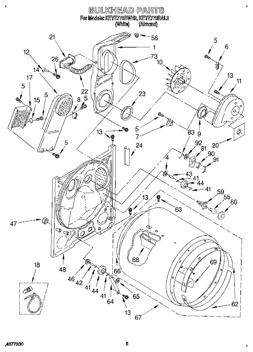 Replaces a cracked, dented, or damaged dryer drum bulkhead. This front drum component restores smooth tumbling action when the original is worn or broken.