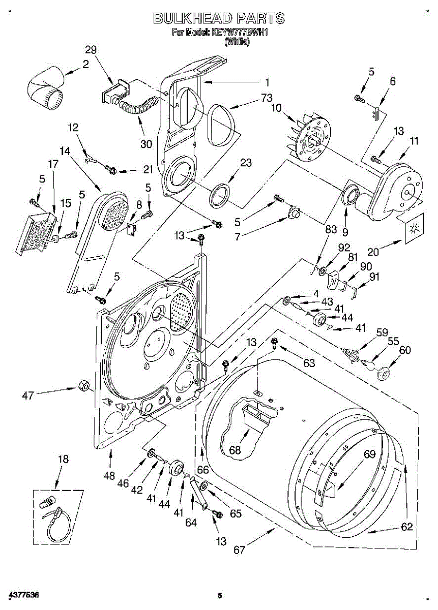 Replaces a cracked, dented, or damaged dryer drum bulkhead. This front drum component restores smooth tumbling action when the original is worn or broken.