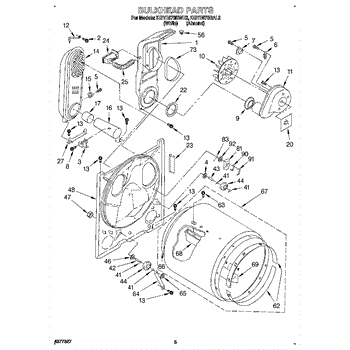 This blower housing assembly directs airflow from the dryer's drum to the exhaust, helping the appliance vent properly for efficient drying. It replaces a damaged or cracked housing to restore correct air path and reduce airflow loss. What it does: