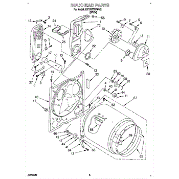 This blower housing assembly directs airflow from the dryer's drum to the exhaust, helping the appliance vent properly for efficient drying. It replaces a damaged or cracked housing to restore correct air path and reduce airflow loss. What it does: