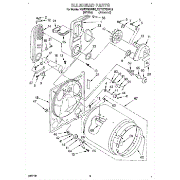 This blower housing assembly directs airflow from the dryer's drum to the exhaust, helping the appliance vent properly for efficient drying. It replaces a damaged or cracked housing to restore correct air path and reduce airflow loss. What it does: