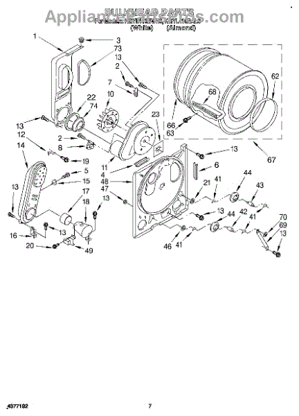 This is a drum assembly intended for use with dryers. This part can be found inside the dryer and is responsible for holding clothing while a cycle is running. It holds wet laundry while loading the appliance. Over time and with use, the drum assembly can start to wear out. This can cause the dryer to squeal, start and stop during a cycle, make buzzing noises, or seize up.If the drum assembly is damaged, it will need to be replaced. Make sure to have basic tools and a pair of work gloves ready. The dryer should be turned off and unplugged from the wall. Raise the top panel, remove the front panel, and then remove the drum. The drum support roller should be taken out and installed on the new drum. Reinstall with the new component and reassemble all parts before use.The drum assembly is made to be used with dryers and washer/dryer combos from Inglis, Estate, Admiral, Crosley, Roper, Magic Chef, Amana, KitchenAid, Maytag, Kenmore, and Whirlpool. It is a genuine OEM replacement part that is sourced directly from the manufacturer. The part is sold on an individual basis.