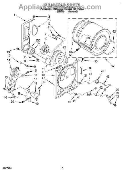 This is a drum assembly intended for use with dryers. This part can be found inside the dryer and is responsible for holding clothing while a cycle is running. It holds wet laundry while loading the appliance. Over time and with use, the drum assembly can start to wear out. This can cause the dryer to squeal, start and stop during a cycle, make buzzing noises, or seize up.If the drum assembly is damaged, it will need to be replaced. Make sure to have basic tools and a pair of work gloves ready. The dryer should be turned off and unplugged from the wall. Raise the top panel, remove the front panel, and then remove the drum. The drum support roller should be taken out and installed on the new drum. Reinstall with the new component and reassemble all parts before use.The drum assembly is made to be used with dryers and washer/dryer combos from Inglis, Estate, Admiral, Crosley, Roper, Magic Chef, Amana, KitchenAid, Maytag, Kenmore, and Whirlpool. It is a genuine OEM replacement part that is sourced directly from the manufacturer. The part is sold on an individual basis.