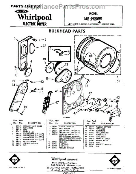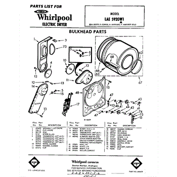 Parts for Whirlpool LAE5920W1: 01 - Bulkhead Parts