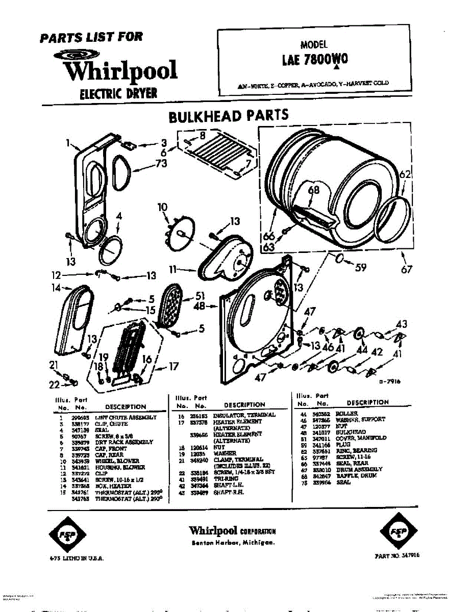 Parts for Whirlpool LAE7800W0: 01 - Bulkhead Parts
