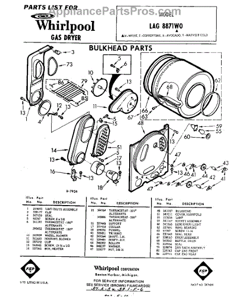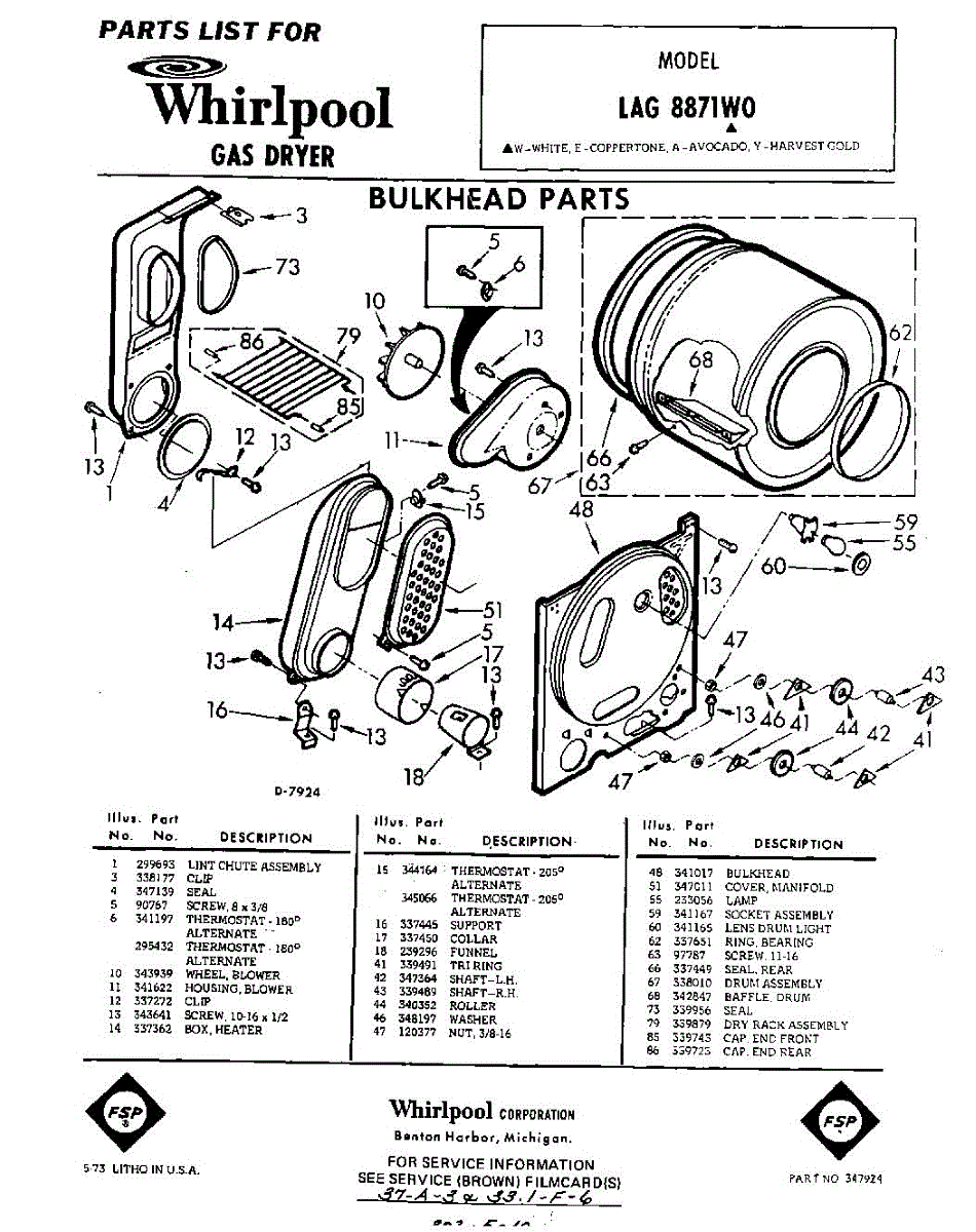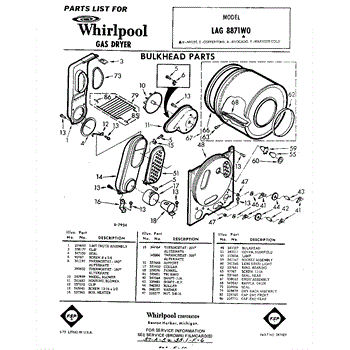 Parts for Whirlpool LAG8871W0: 01 - Bulkhead Parts