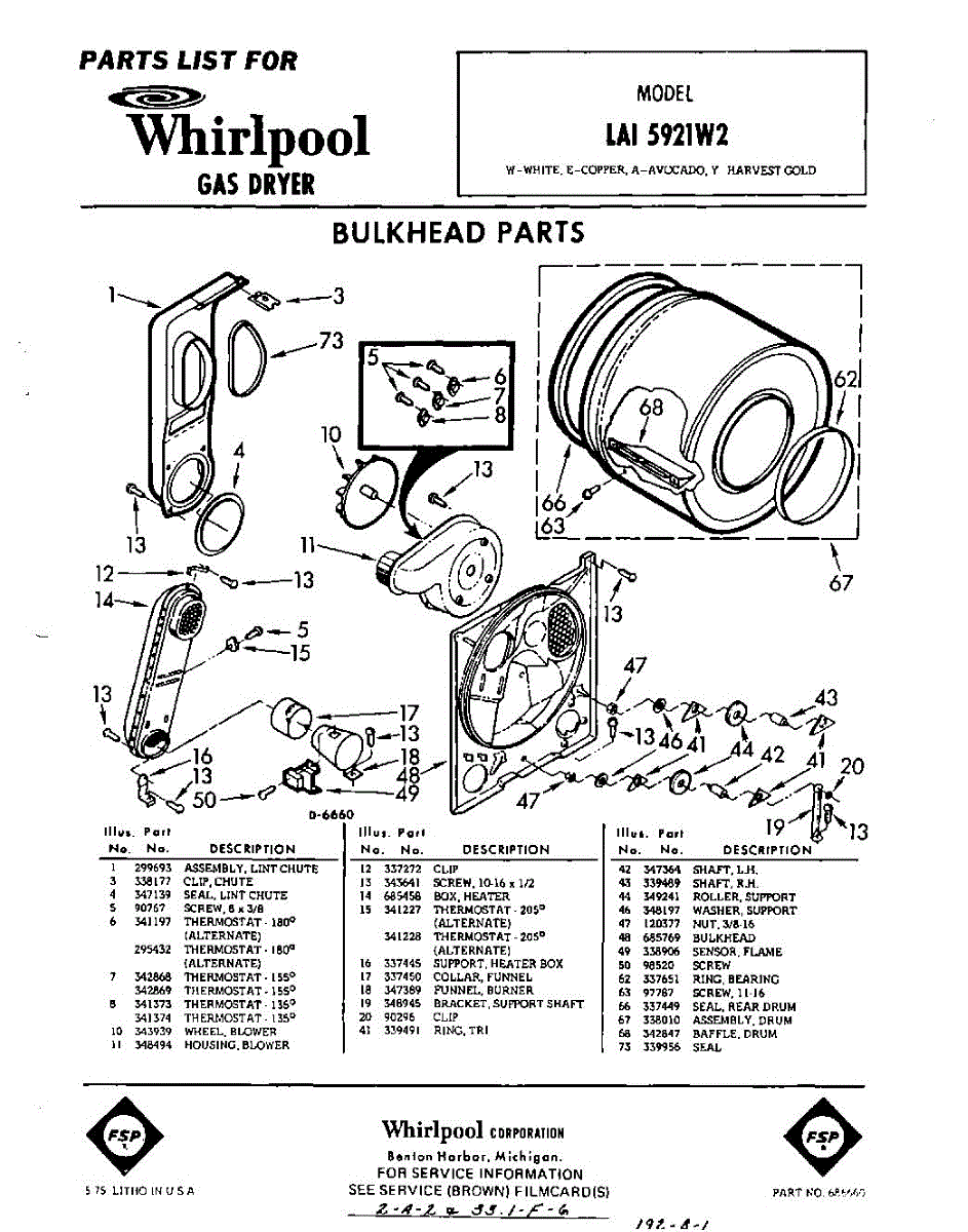 Parts for Whirlpool LAI5921W2: 01 - Bulkhead Parts