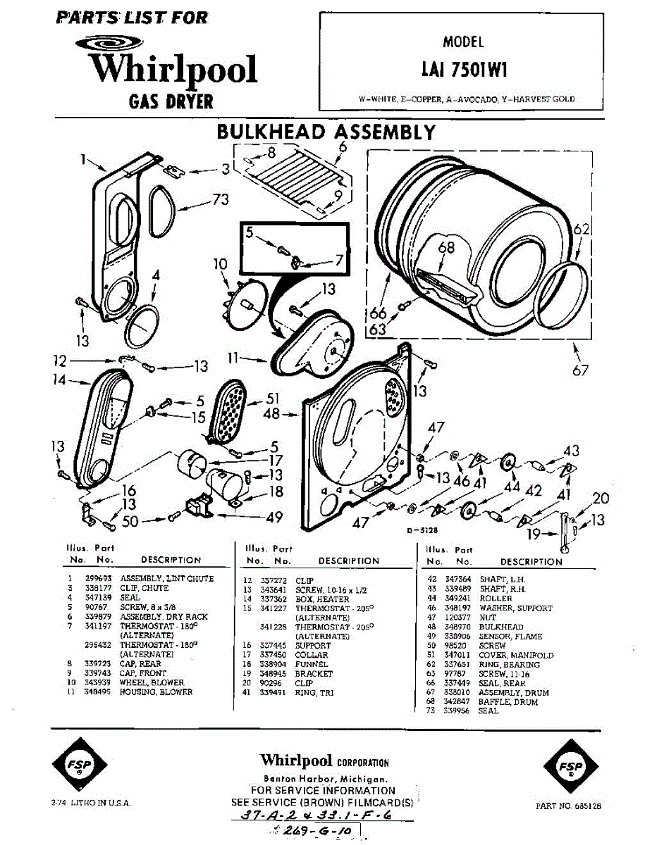 Parts for Whirlpool LAI7501W1: 01 - Bulkhead Parts