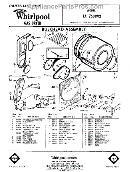 Parts for Whirlpool LAI7501W2: 01 - Bulkhead Parts