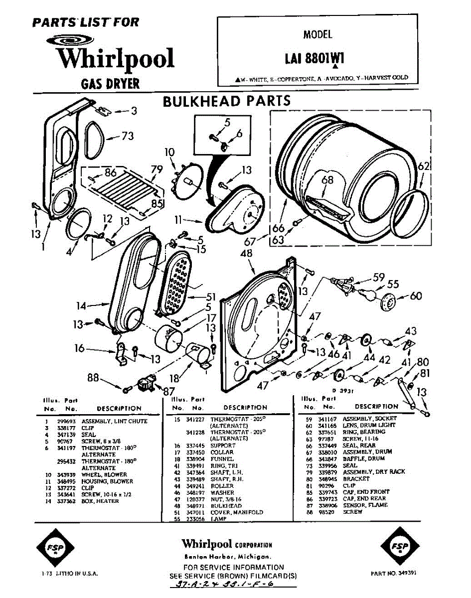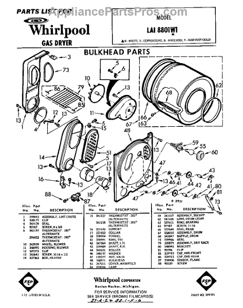 Parts for Whirlpool LAI8801W1: 01 - Bulkhead Parts