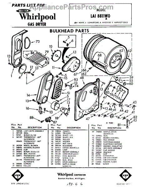 Parts for Whirlpool LAI8811W0: 01 - Bulkhead Parts