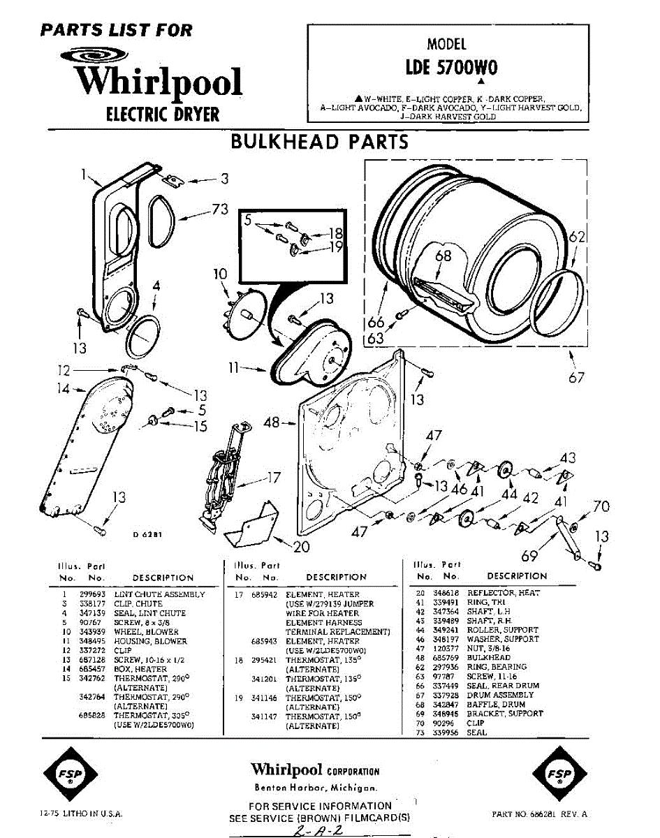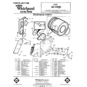 Parts for Whirlpool LDE5700W0: 01 - Bulkhead Parts