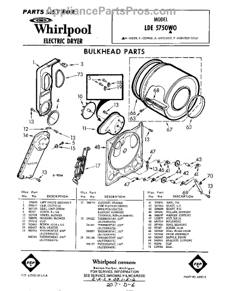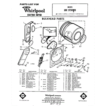 Parts for Whirlpool LDE5750W0: 01 - Bulkhead Parts
