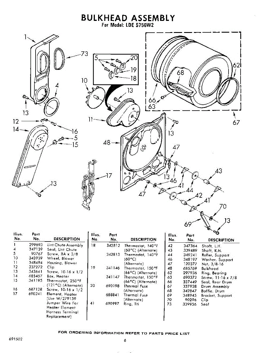 Parts for Whirlpool LDE5750W2: 06 - Bulkhead Parts