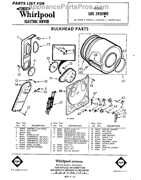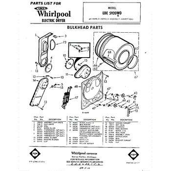 Parts for Whirlpool LDE5920W0: 01 - Bulkhead Parts