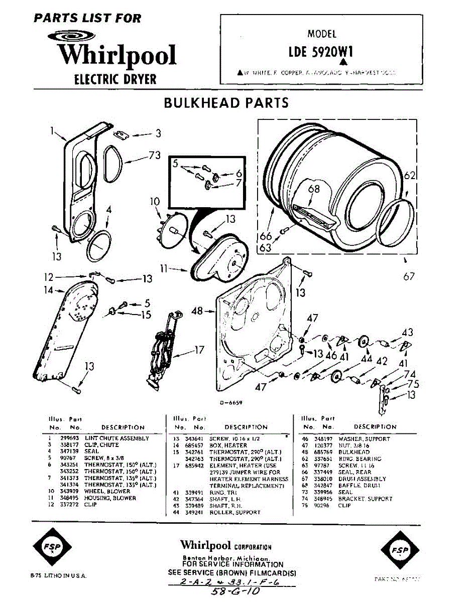 Parts for Whirlpool LDE5920W1: 01 - Bulkhead Parts