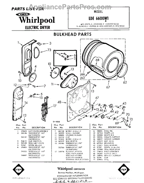 Parts for Whirlpool LDE6600W1: 01 - Bulkhead Parts
