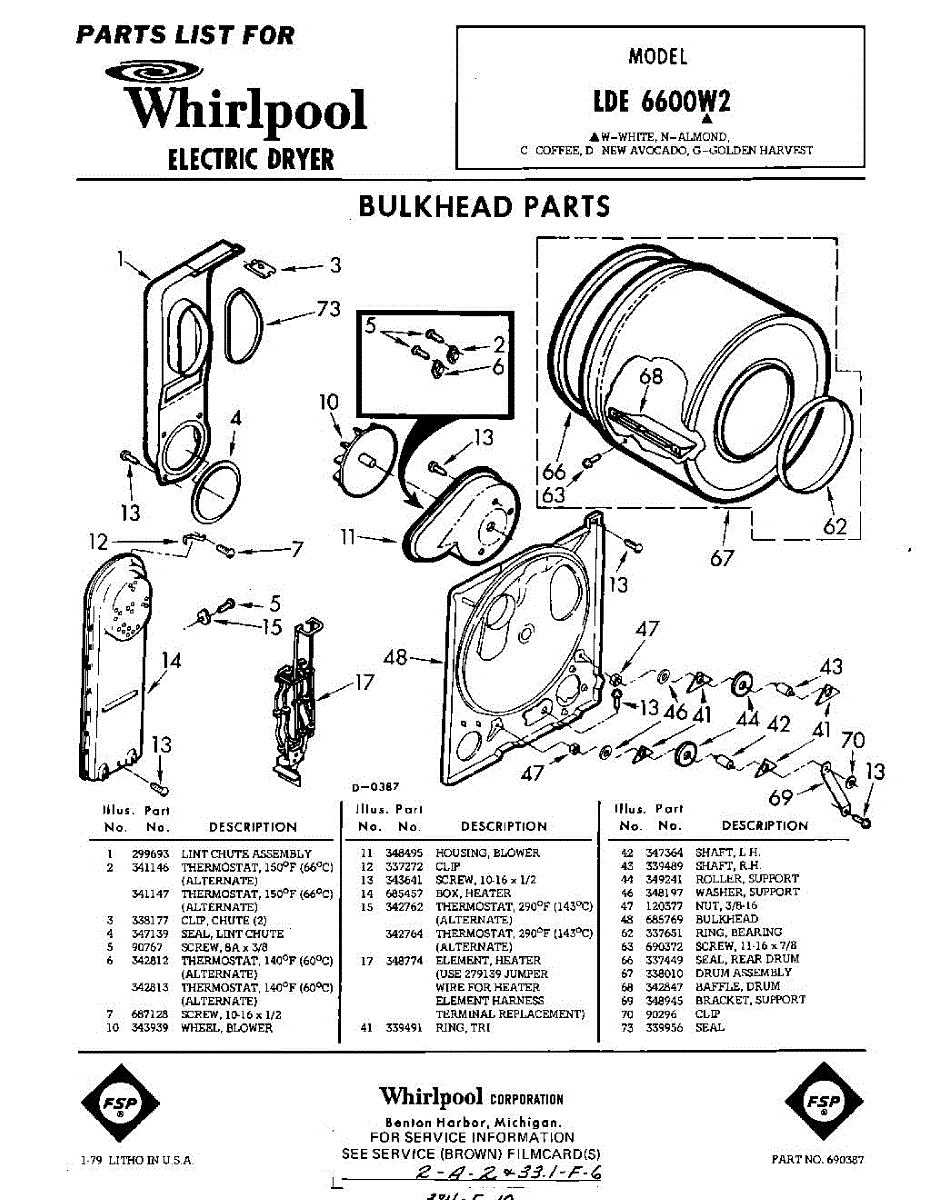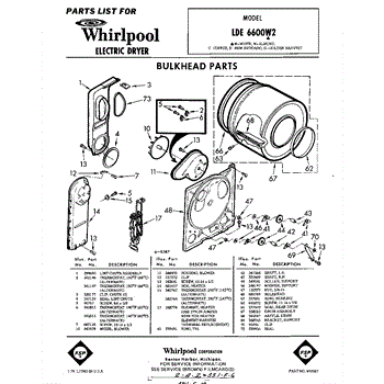 Parts for Whirlpool LDE6600W2: 01 - Bulkhead Parts