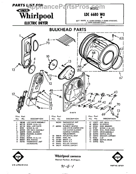 Parts for Whirlpool LDE6680W0: 01 - Bulkhead Parts