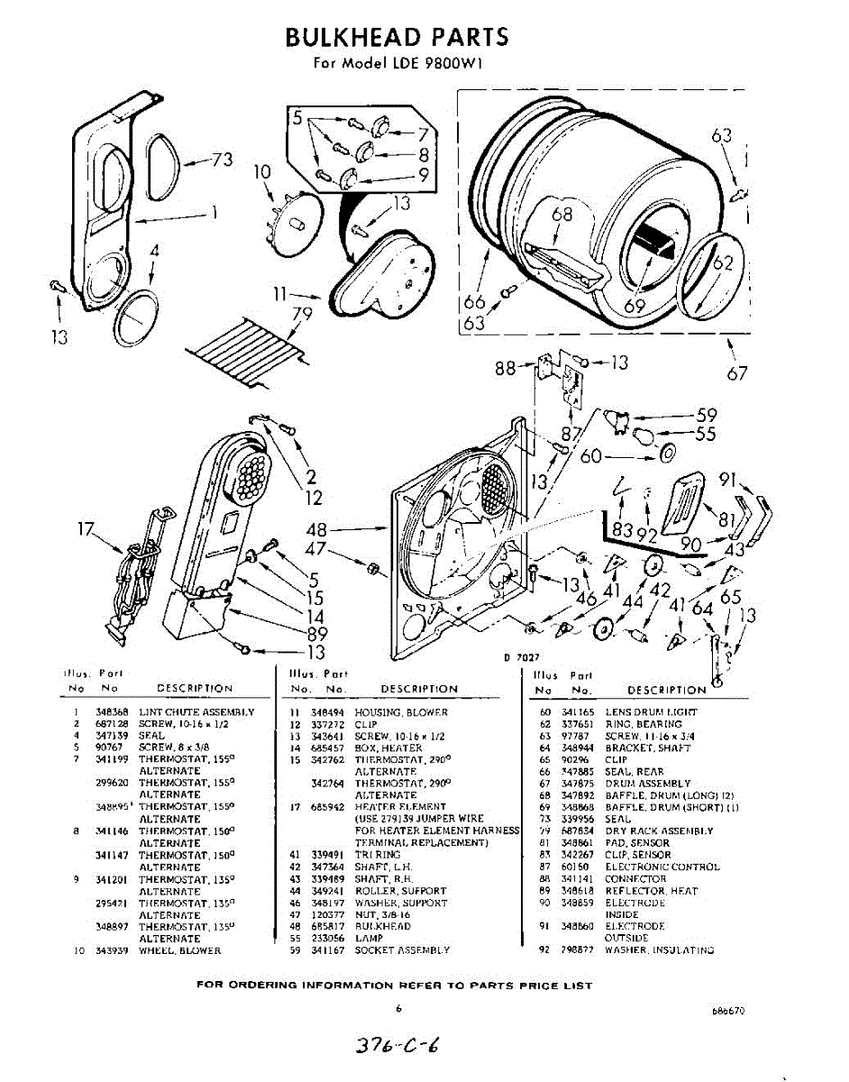 Parts for Whirlpool LDE9800W1: 06 - Bulkhead Parts