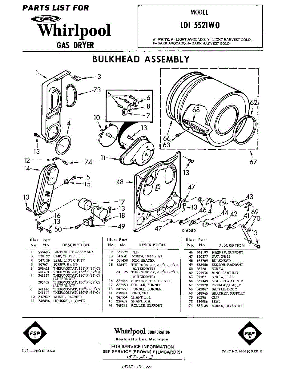 Parts for Whirlpool LDI5521W0: 01 - Bulkhead Parts
