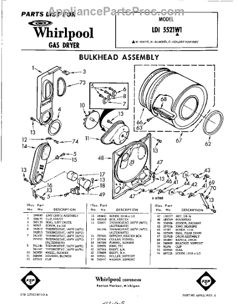 Parts for Whirlpool LDI5521W1: 01 - Bulkhead Parts