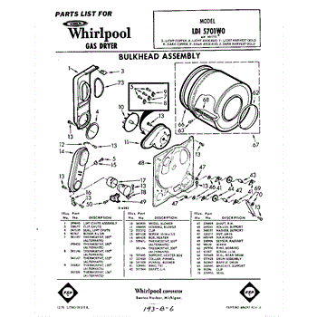 Parts for Whirlpool LDI5701W0: 01 - Bulkhead Parts