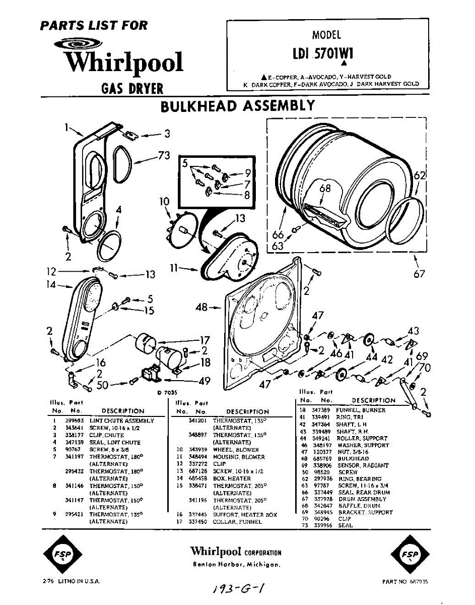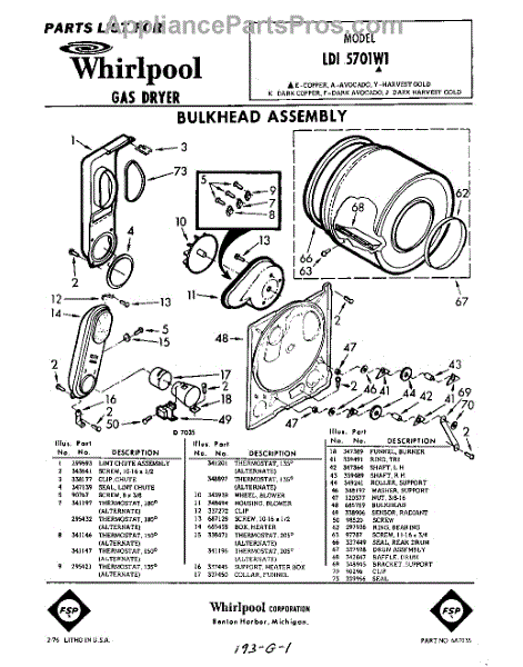 Parts for Whirlpool LDI5701W1: 01 - Bulkhead Parts