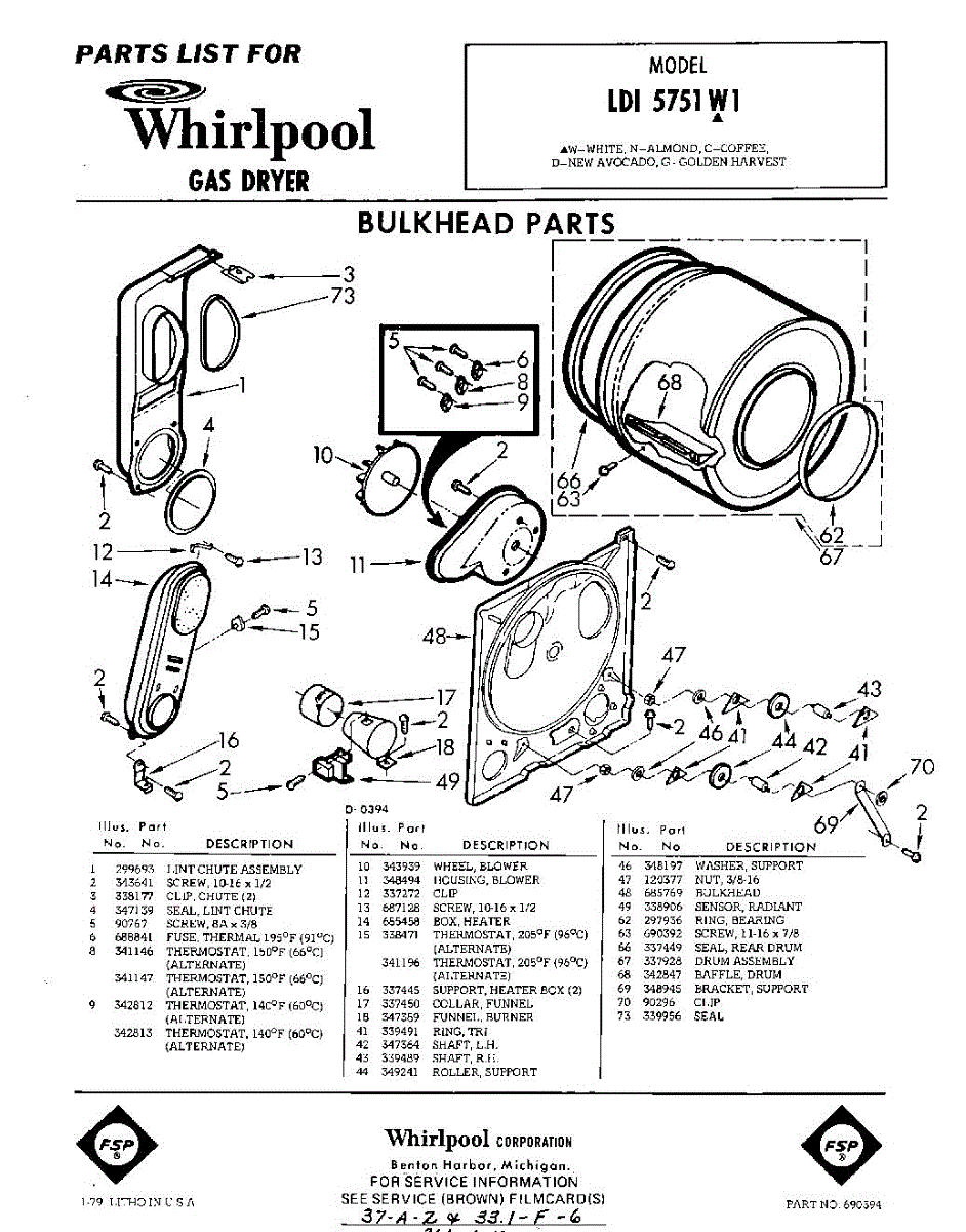 Parts for Whirlpool LDI5751W1: 01 - Bulkhead Parts