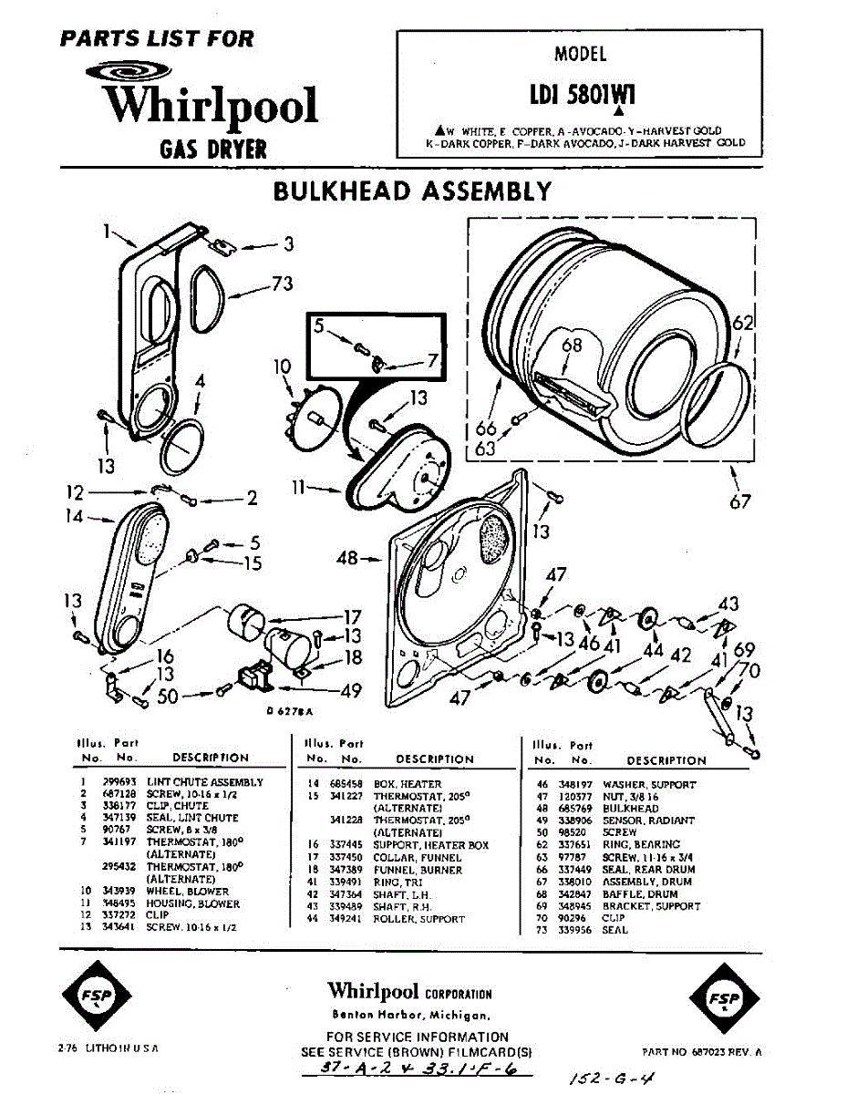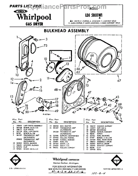 Parts for Whirlpool LDI5801W1: 01 - Bulkhead Parts