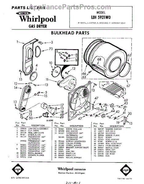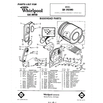 Parts for Whirlpool LDI5921W0: 01 - Bulkhead Parts