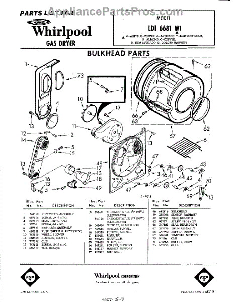 Parts for Whirlpool LDI6681W1: 01 - Bulkhead Parts