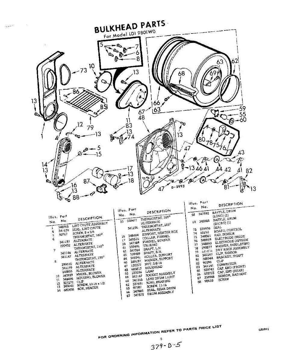 Parts for Whirlpool LDI9801W0: 05 - Bulkhead Parts