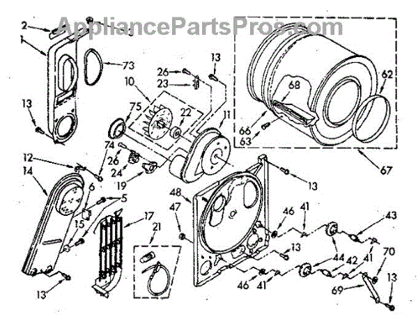 Replacement drum baffle that lifts and tumbles clothes inside the dryer for more even drying and helps prevent garments from snagging. Restores proper drum agitation to reduce noise and improve drying performance. What it does: