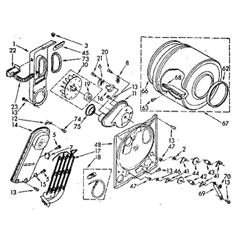 This is a drum assembly intended for use with dryers. This part can be found inside the dryer and is responsible for holding clothing while a cycle is running. It holds wet laundry while loading the appliance. Over time and with use, the drum assembly can start to wear out. This can cause the dryer to squeal, start and stop during a cycle, make buzzing noises, or seize up.If the drum assembly is damaged, it will need to be replaced. Make sure to have basic tools and a pair of work gloves ready. The dryer should be turned off and unplugged from the wall. Raise the top panel, remove the front panel, and then remove the drum. The drum support roller should be taken out and installed on the new drum. Reinstall with the new component and reassemble all parts before use.The drum assembly is made to be used with dryers and washer/dryer combos from Inglis, Estate, Admiral, Crosley, Roper, Magic Chef, Amana, KitchenAid, Maytag, Kenmore, and Whirlpool. It is a genuine OEM replacement part that is sourced directly from the manufacturer. The part is sold on an individual basis.